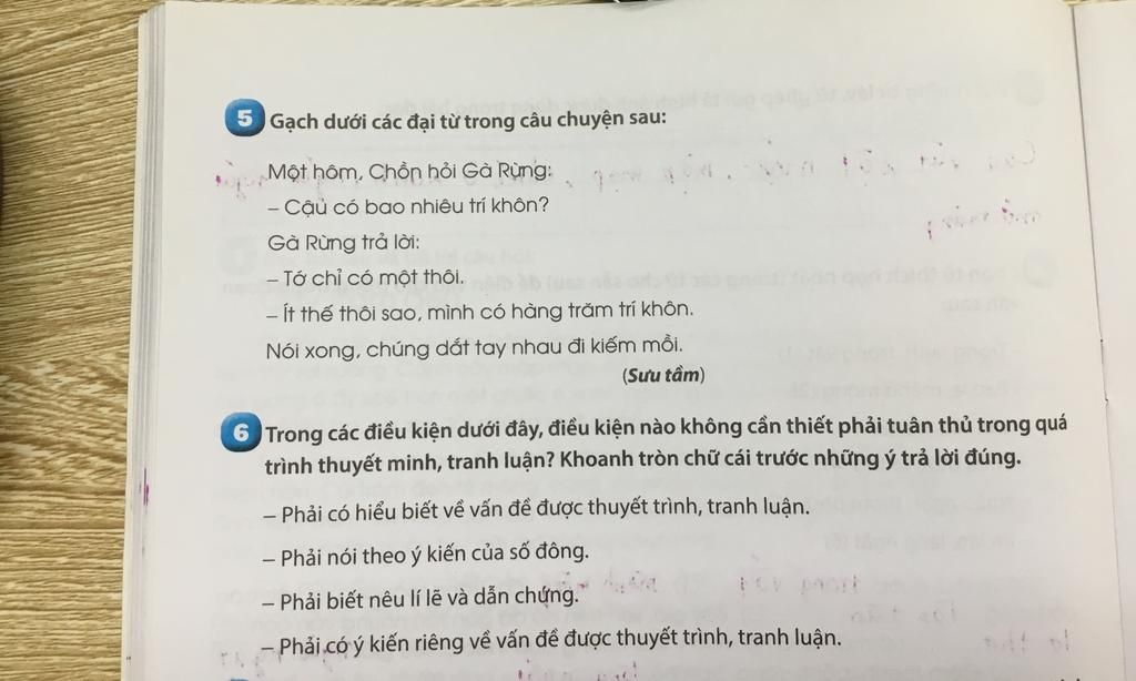 5 Gạch dưới các đại từ trong câu chuyện sau: