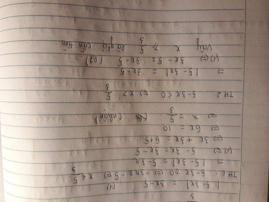 ⇔ \(\left[ \begin{array}{l}5-3x=3x-5\\5-3x=-3x+5\end{array} \right.\)