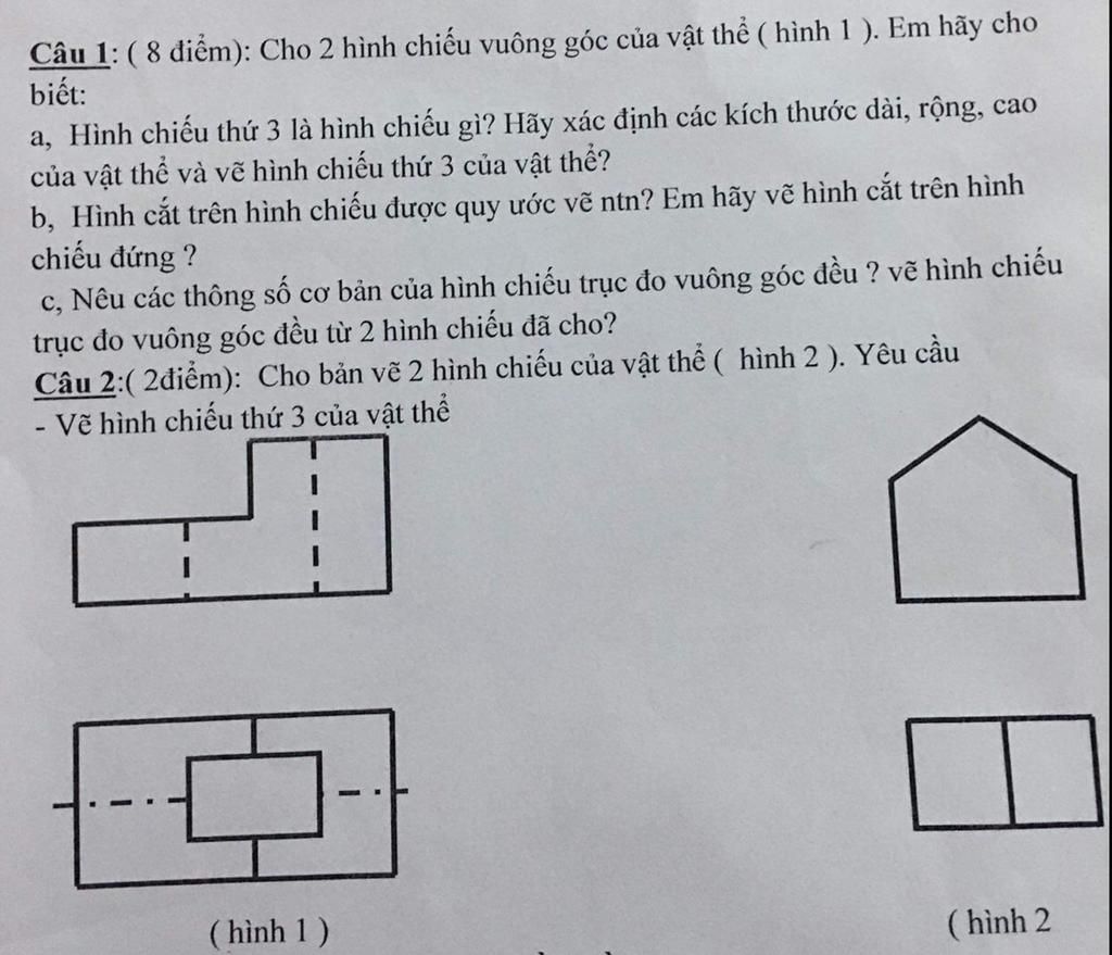 Câu 1: ( 8 điểm): Cho 2 hình chiếu vuông góc của vật thể ( hình 1). Em hãy cho