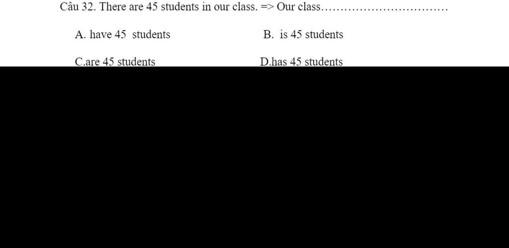 $Câu$ $45$ $:$ There are 45 students in our class `=>` Our class `has` `45` `student`