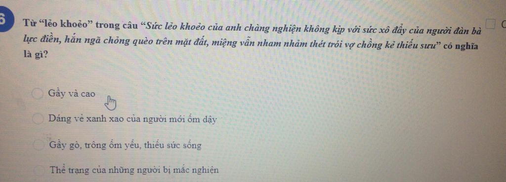 Lẻo khoẻo ở đây miêu tả nhưng người tuy cao, nhưng lại gầy gò ốm yếu