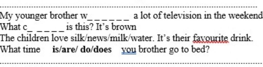 → My brother là danh từ số it nên V-s/es, trường hợp này ta thêm es → watches.