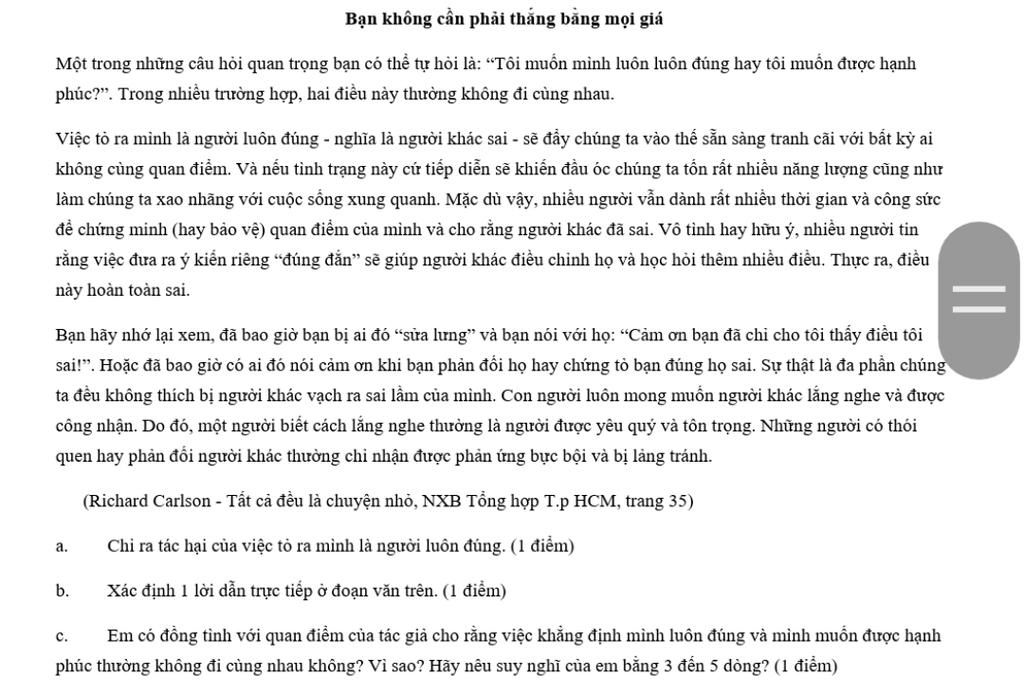 ⇒ lời dẫn trực tiếp: "Tôi muốn mình luôn luôn đúng hay tôi muốn được hạnh phúc ?