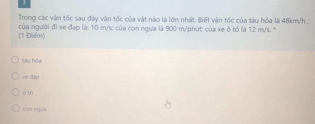$\text{Suy ra vận tốc của con ngựa nhanh nhất}$
