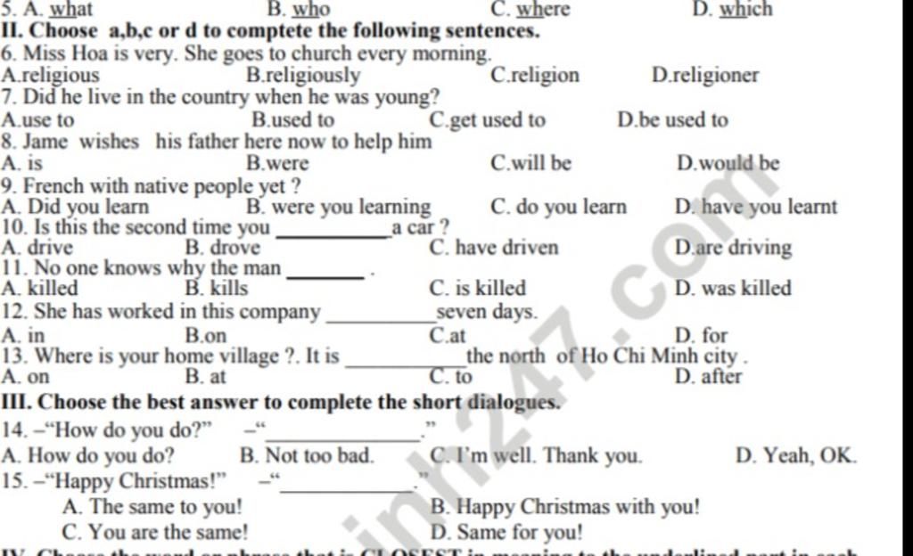 `=>` Quê bạn ở đâu ?. Nó nằm ở phía bắc của thành phố Hồ Chí Minh.