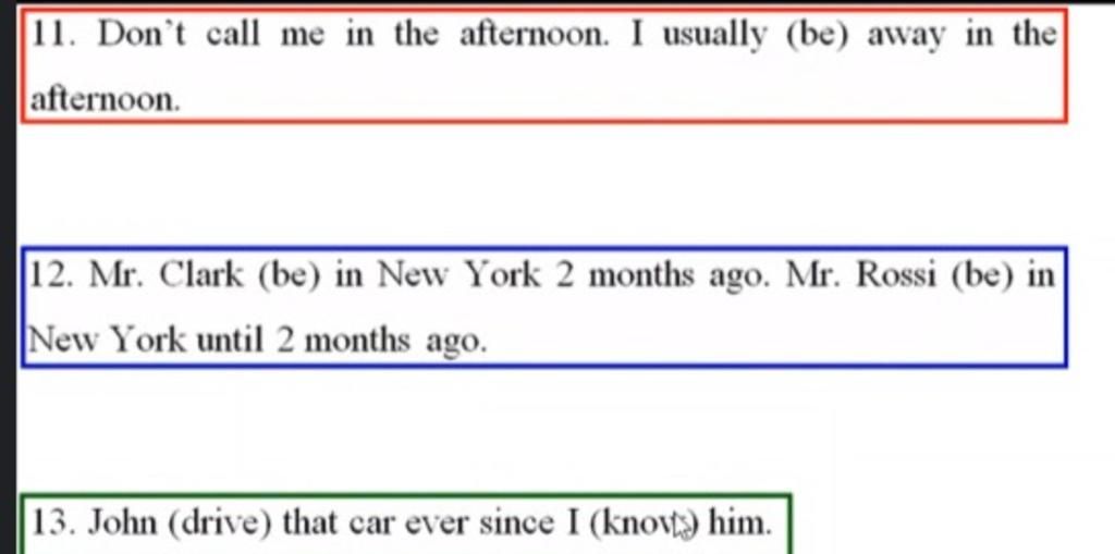 |12. Mr. Clark (be) in New York 2 months ago. Mr. Rossi (be) in