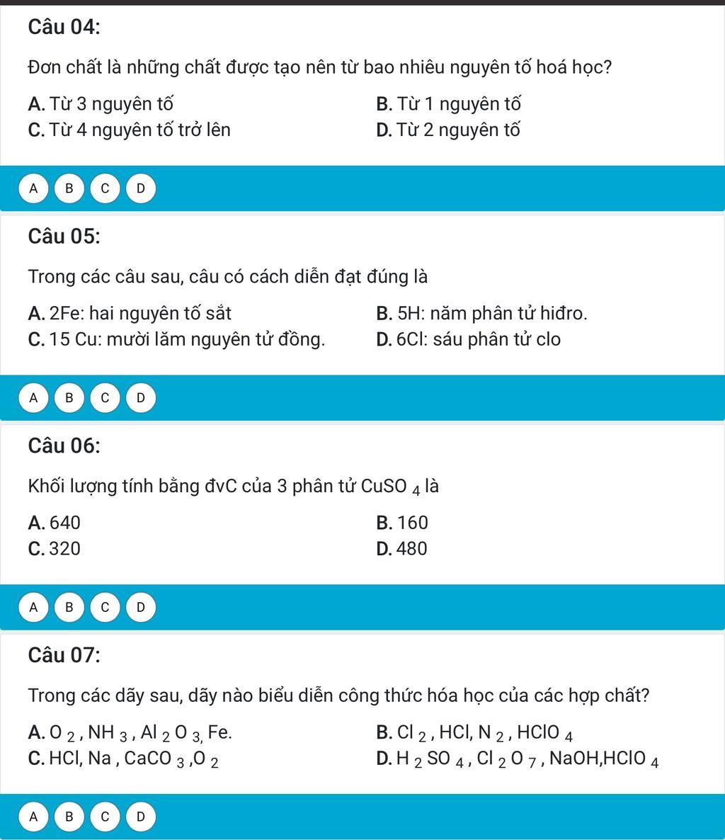 D. Đọc là 6 nguyên tử clo `⇒` Loại