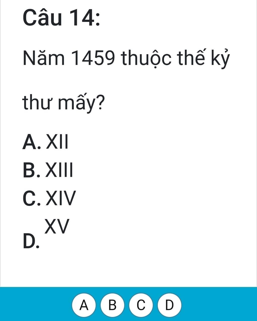 `->` $\text{Năm 1459 thuộc thế kỉ XV ( 15 ) , nó đã sang thế kỉ XV 59 năm}$