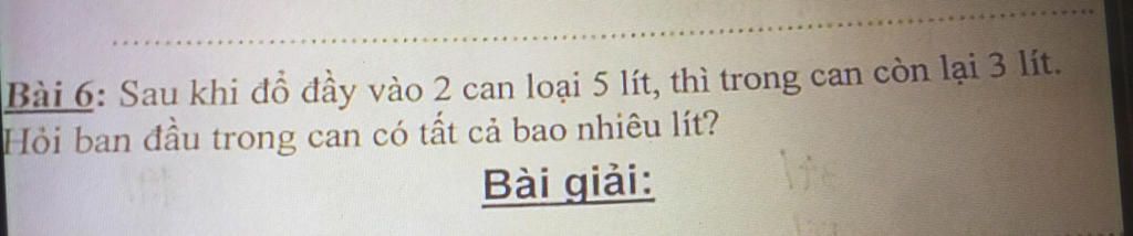 $\text{Ban đầu trong can có tất cả số lít là :}$