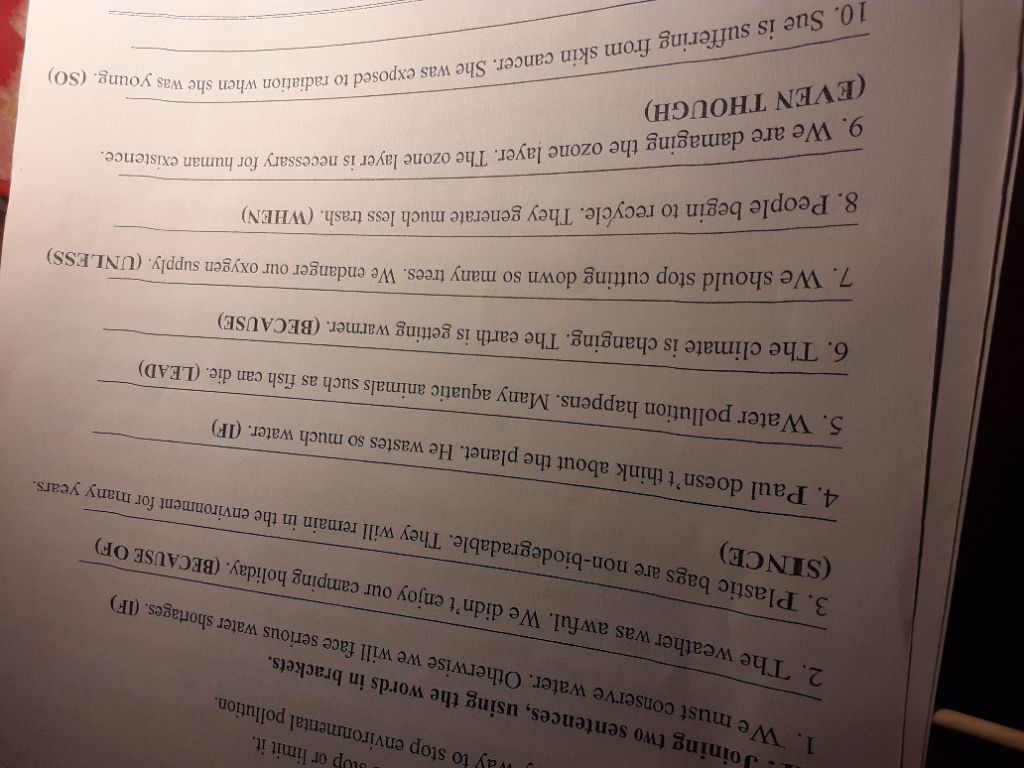 7 We should stop cutting down so many trees. We endanger our oxygen supply. (UNLESS)