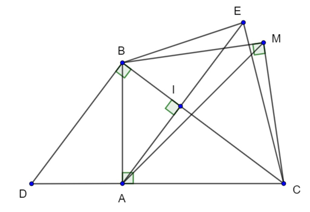 `=> AI⊥BC; I` là trung điểm của `AE`
