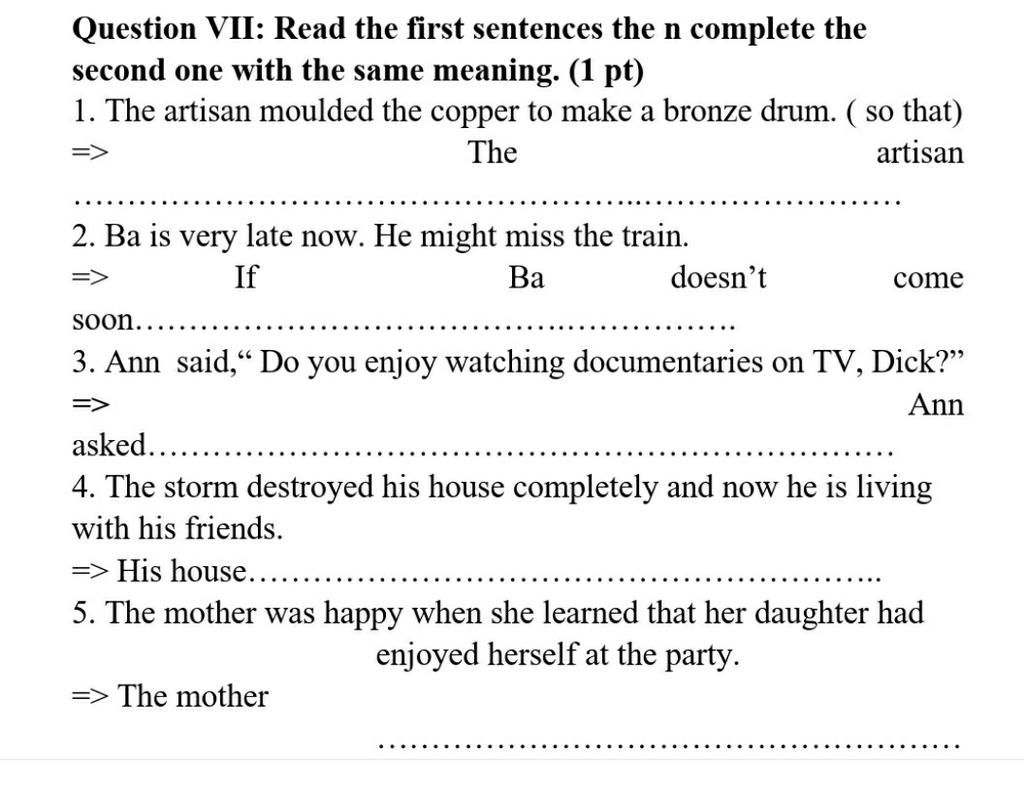 1. The artisan moulded the copper to make a bronze drum. ( so that)