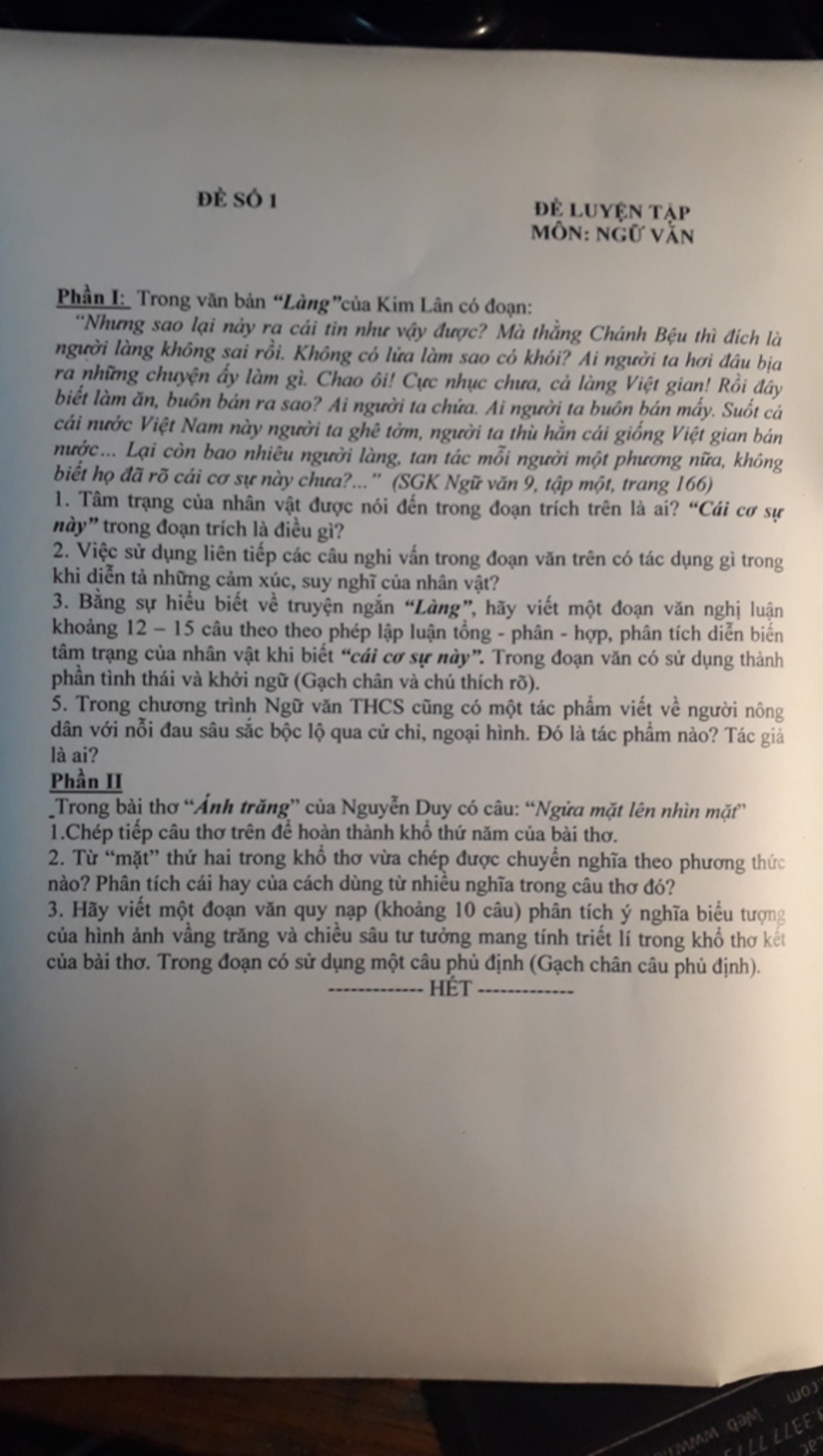 Phần I: Trong văn bản “Làng"của Kim Lân có đoạn: