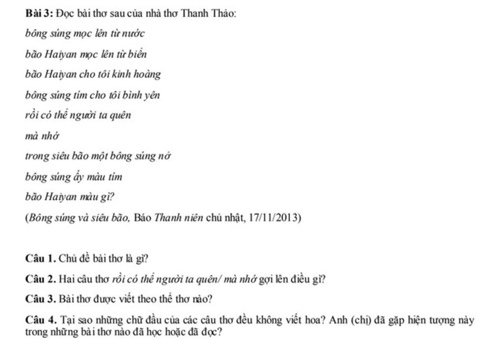 Những chữ đầu của các câu thơ đều không viết hoa vì: