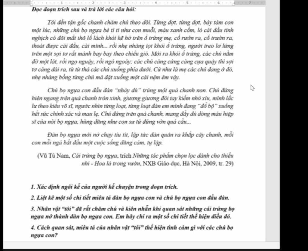 Câu 2 : - Chi tiết miêu tả đàn bọ ngựa : bé tí ti như con muỗi , màu xanh cốm , ló cái đầu tinh nghịch có đôi mắt thô lố lách khỏi kẽ hở trên ổ trứng mẹ , cố rướn ra , cố trườn ra thoát được cái đầu , cái mình , mới ra khỏi ổ trứng