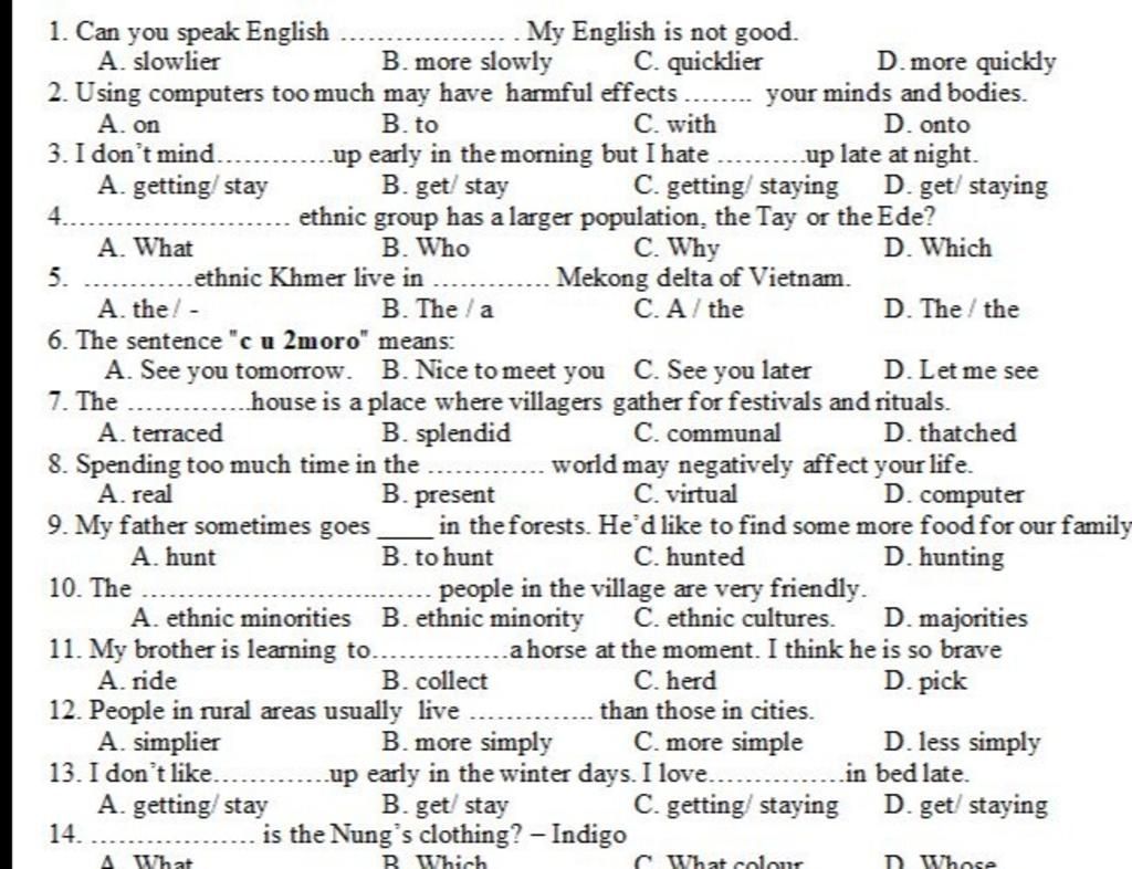 3. d( get: ko dùng getting vì ko có tobe; sau hate+V-ing)