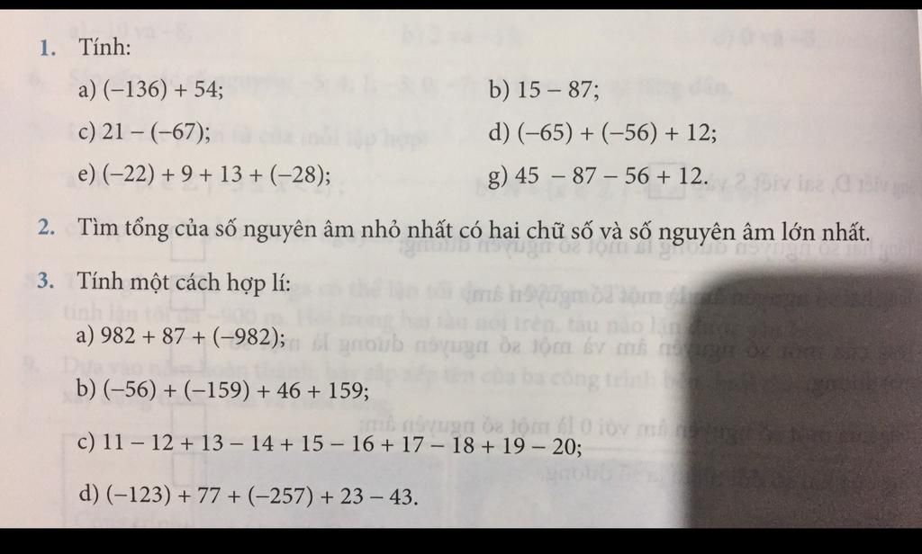 2. Tìm tổng của số nguyên âm nhỏ nhất có hai chữ số và số nguyên âm lớn nhất.