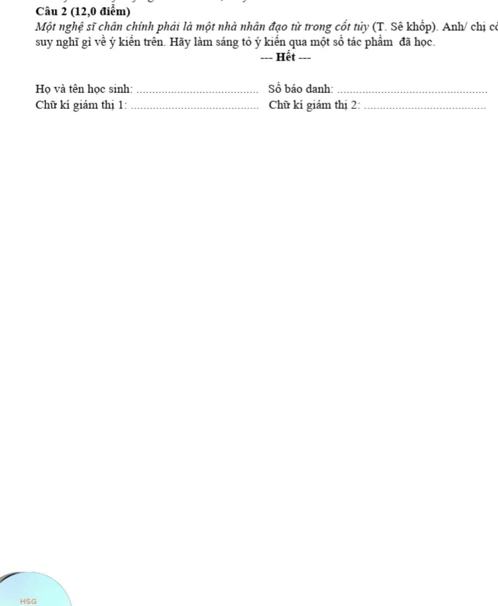 Một nghệ sĩ chân chính phải là một nhà nhân đạo từ trong cốt tủy (T. Sê khốp). Anh chị có