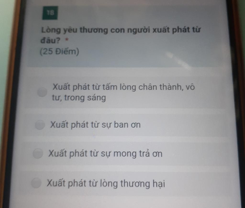 $\text{→ Chọn xuất phát từ tấm lòng chân thành, vô tư, trong sáng}$