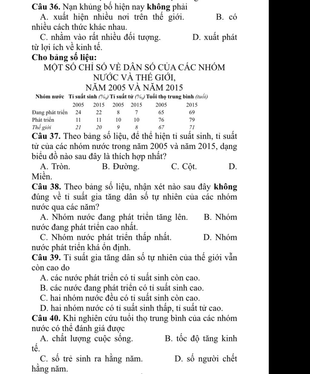 MỘT SỐ CHỈ SÓ VÈ DÂN SÓ CỦA CÁC NHÓM