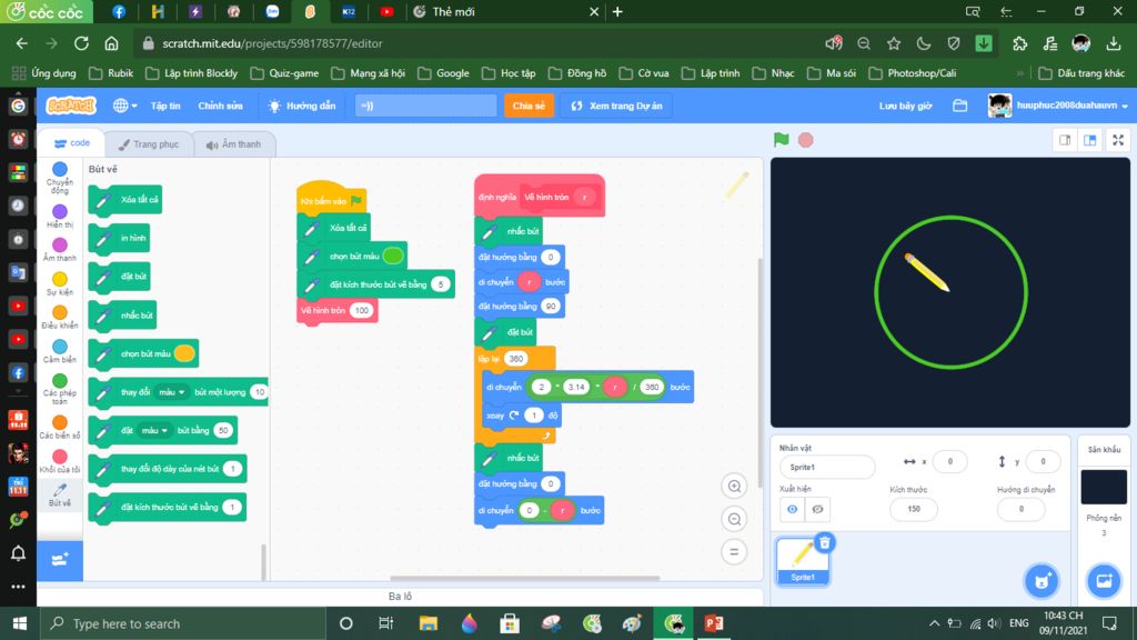 Cách 1: Vẽ đường tròn trong Scratch đơn giản nhất
