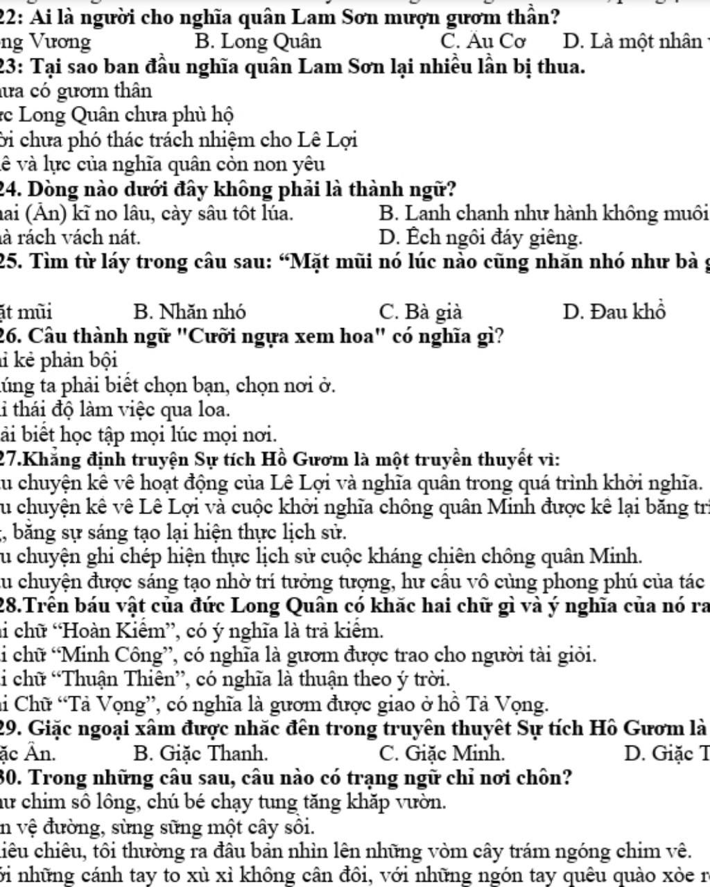 22: Ai là người cho nghĩa quân Lam Sơn mượn gươm thần?