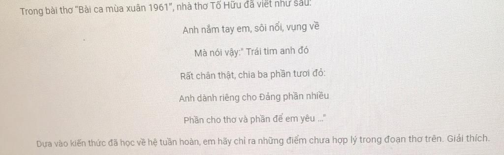Điểm vô lí: `text{"Rất chân thật ba phần đỏ tươi"}`