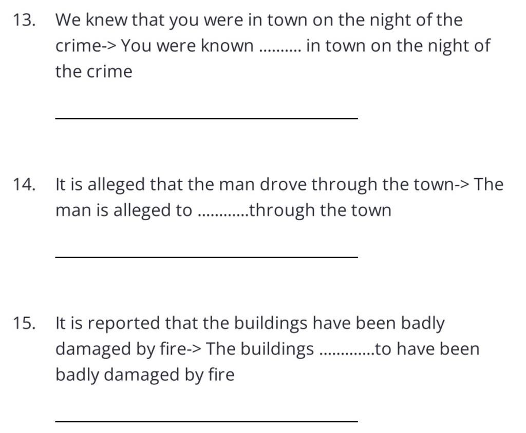 `=` S + be + said/believed/thought/knew/expected/reported + to do/to be doing/ to have done.