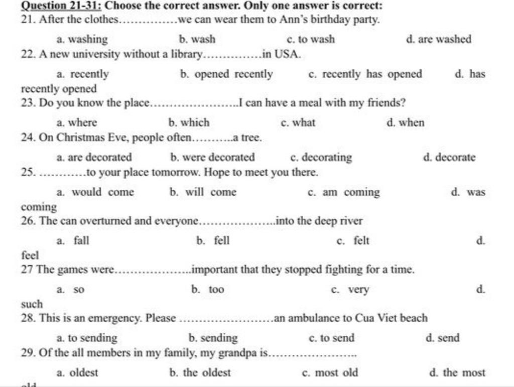 21. D. Are washed.