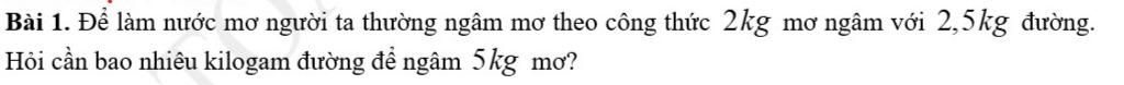 Cần số ki - lô - gam đường để ngâm với 5 ki - lô - gam mơ là :