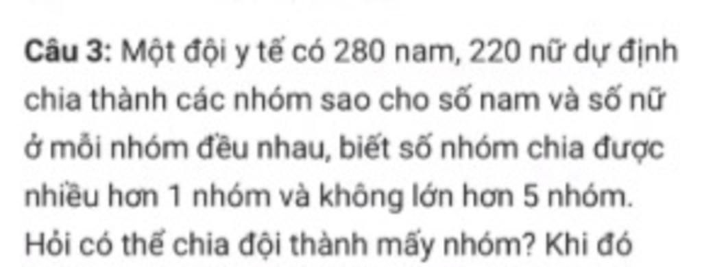 Vì 280 nam và 220 nữ dự định chia thành các nhóm đều nhau nên: