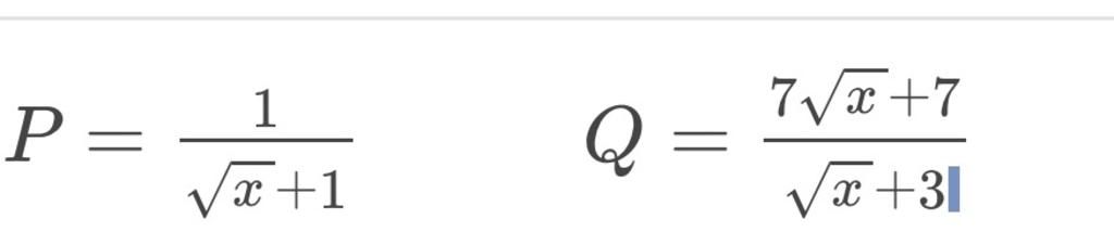 `=>M=\frac{7(\sqrt{x}+1)}{(\sqrt{x}+1)(\sqrt{x}+3)}`
