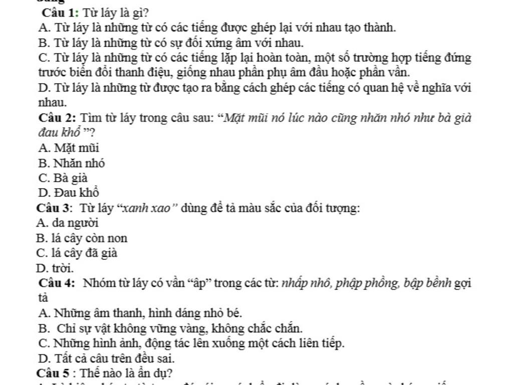1.C.Là những từ láy có các tiếng lặp lại hoàn toàn,một số trường hợp tiếng đứng.. phần vần.