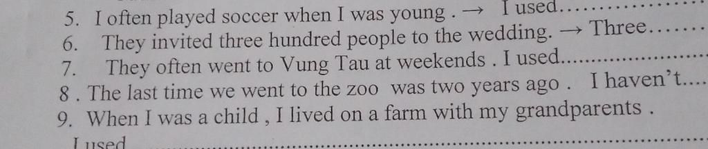 9. I USED TO LIVE ON A FARM WITH MY GRANDPARENTS. -> NHỮNG HÀNH ĐỘNG LÀM THƯỜNG XUYÊN TRONG QUÁ KHỨ NHƯNG KHÔNG LÀM Ở HIỆN TẠI