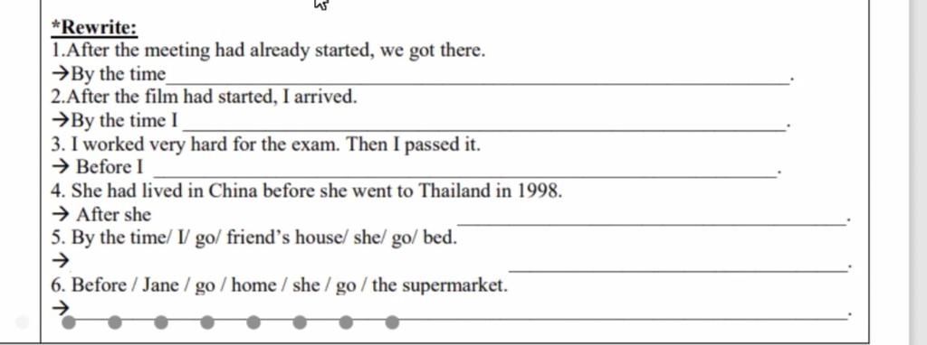 $6.$ Before Jane went home, she had gone to the supermarket.