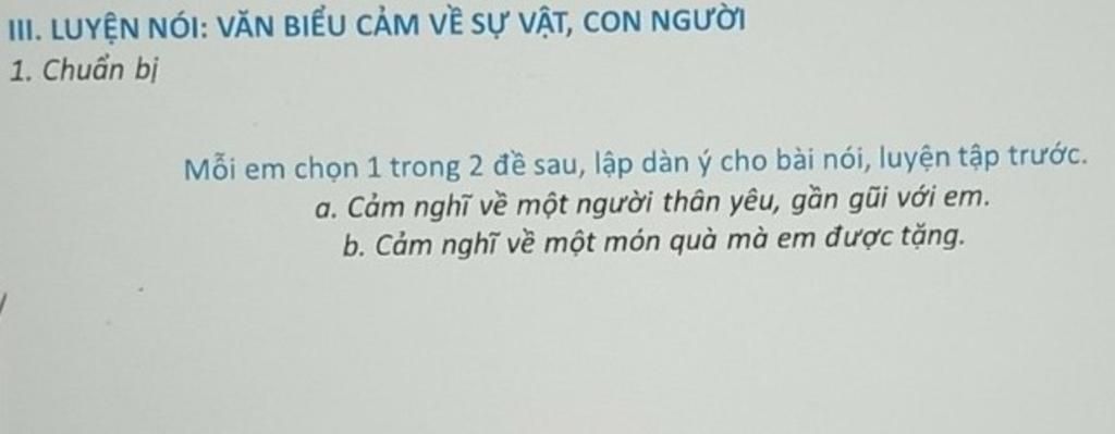 III. LUYỆN NÓI: VĂN BIỂU CẢM VỀ SỰ VẬT, CON NGƯỜI
