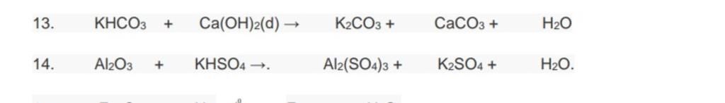 $\text{14) Al2O3+6KHSO4$\rightarrow$Al2(SO4)3+3K2SO4+3H2O}$