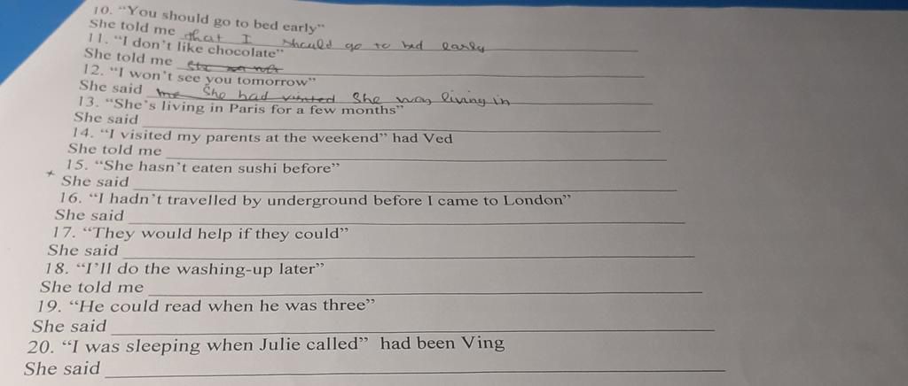 `16.` She said that she hadn’t travelled by underground before she came to London.