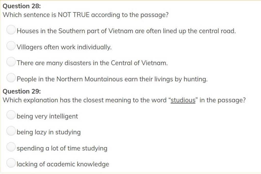 Question 29: Which explanation has the closest meaning to the word "studious" in the passage? (Giải thích nào có ý nghĩa gần nhất cho từ "studious" trong đoạn văn?)