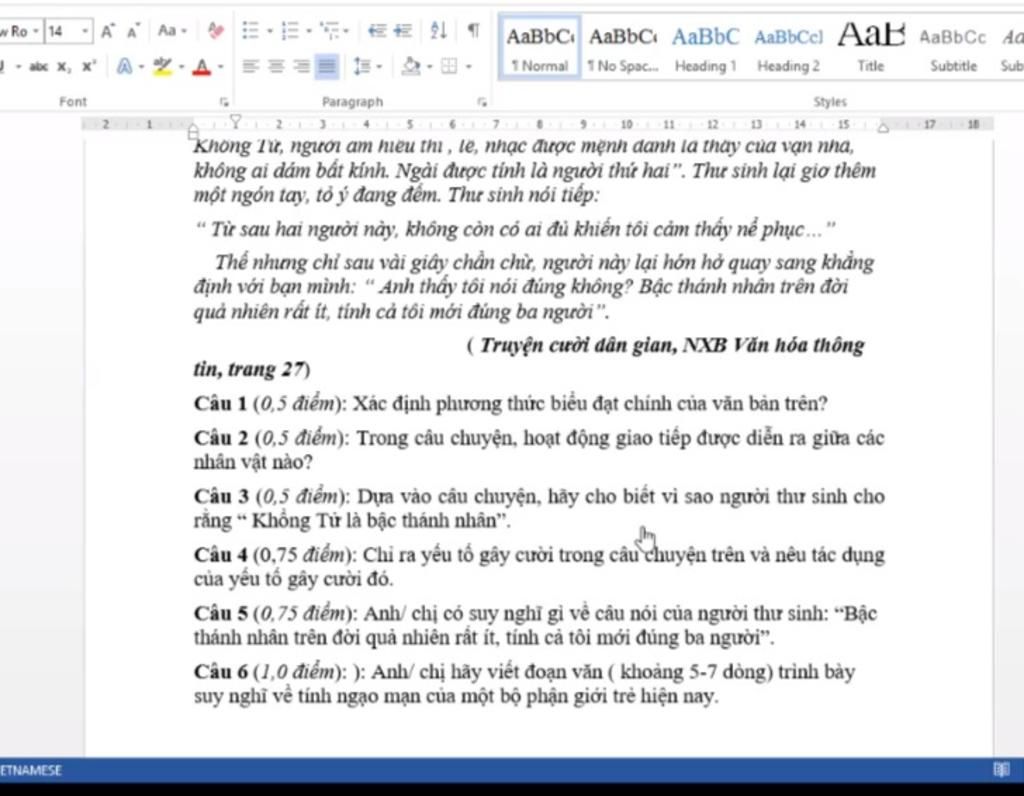 ( Gây cười do ở trên anh thư sinh nói rằng sau hai bậc thánh nhân thì không có ai đủ khiến anh ta nể phục nhưng ở dưới lại nêu mình là thánh nhân thứ ba . Vì vậy nên ở đây chính anh ta đang nói rằng bản thân anh ta không nể phục mình và thể hiện rõ thói ngạo mạn . )