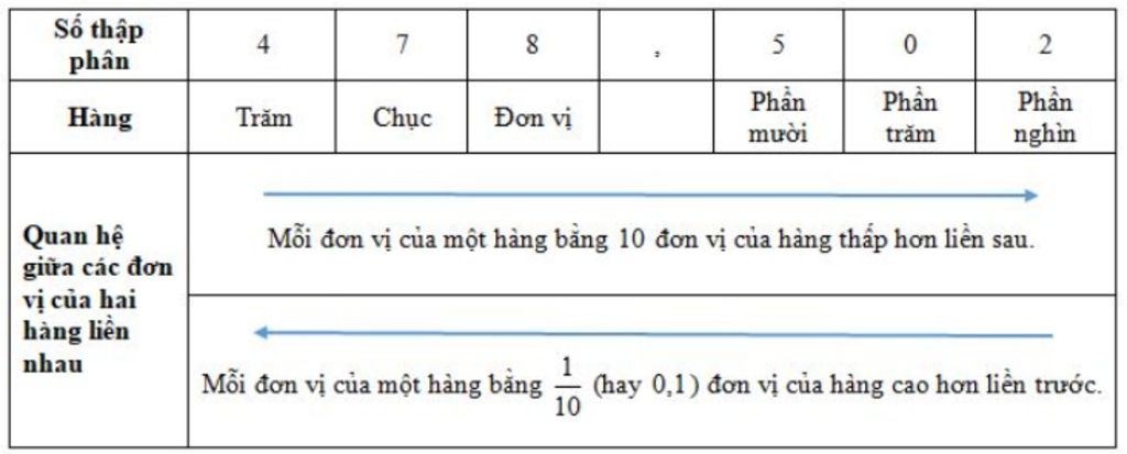 Số thập phần gồm hai phần, trước dấu phẩy là phần nguyên, sau dấu phẩy là phần thập phần.