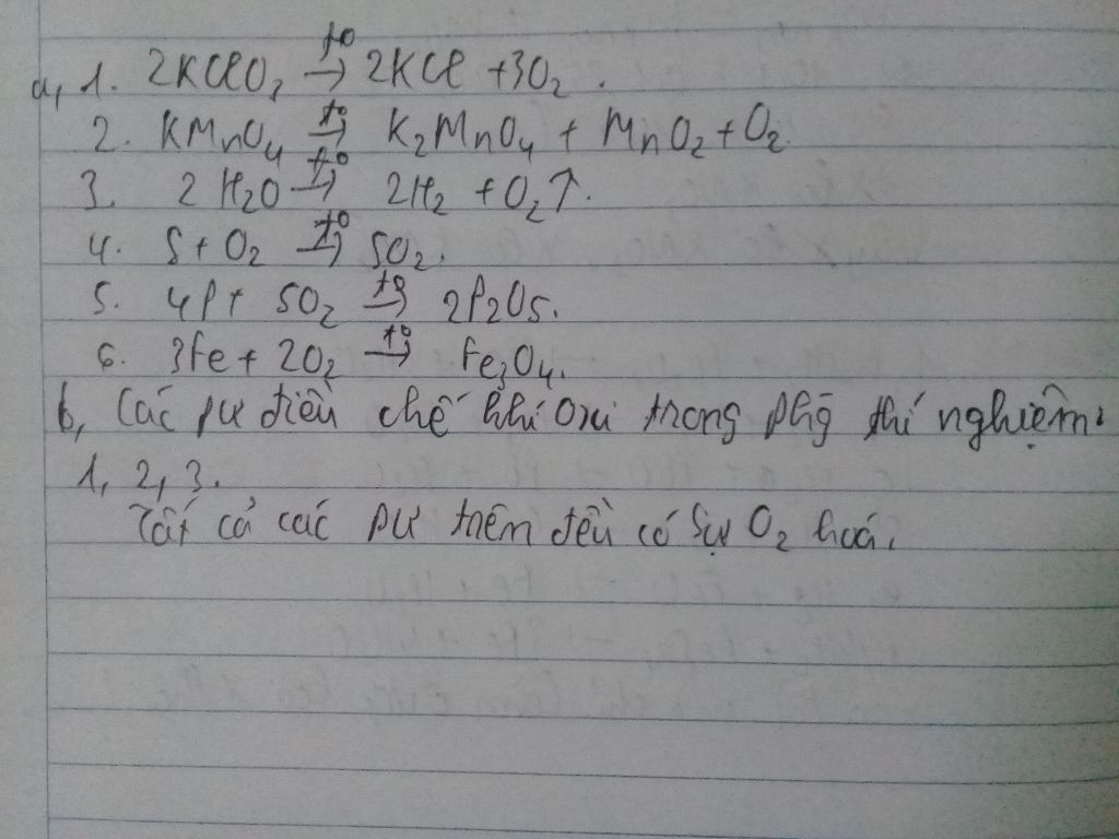 Các phản ứng điều chế O2 trong phòng thí nghiệm là 1) 2) 3 (hiếm)