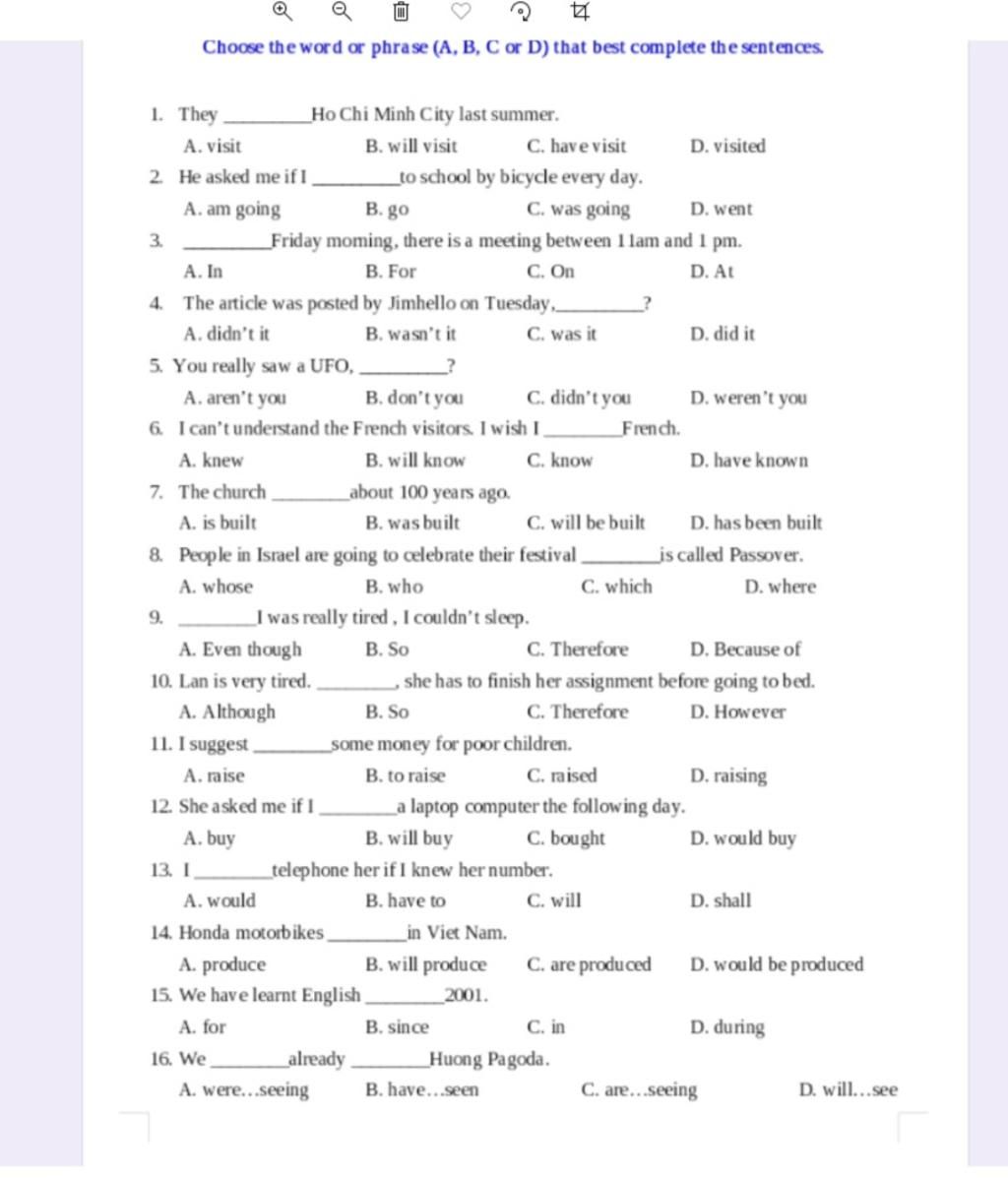 S + asked + O + if/whether + S +V (lùi thì)