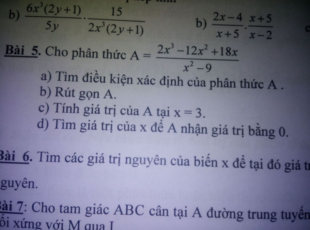 b) $A = \frac{2x ^ 3 - 12x ^ 2 + 18x}{ (x - 3) (x + 3) } \\\Leftrightarrow A = \frac{2x (x - 3) ^ 2}{ (x - 3) (x + 3) } \\\Leftrightarrow A = \frac{2x (x - 3) }{x + 3} $