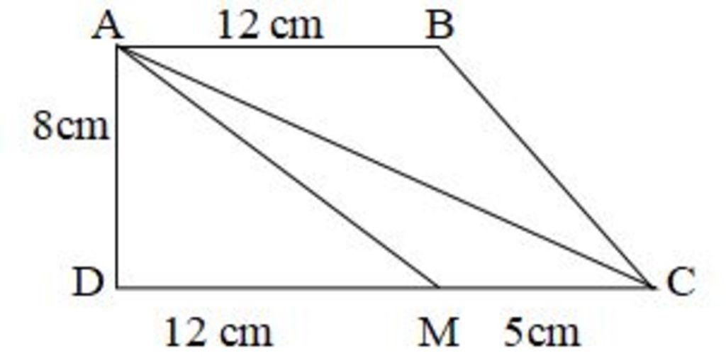 Diện tích $ΔADM^{}$ là: $S=^{}$$\frac{1}{2}$$×8×12=48^{}$ (cm²)