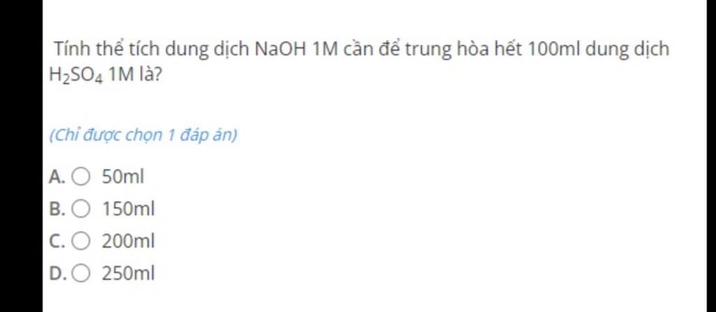 $\rightarrow$ $\text{V NaOH=$\frac{n}{CM}$=$\frac{0,2}{1}$=0,2 lít}$