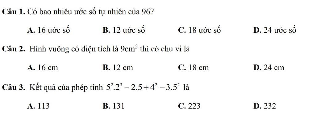 Ư(96) ={1;2;3;4;6;8;12;16;24;32;48;96}
