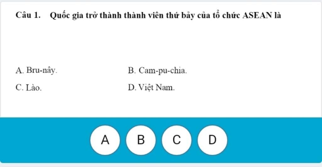 `=>` Ngày `28-7-1995` Việt Nam chính thức trở thành thành viên thứ `7` của hiệp hội ASEAN
