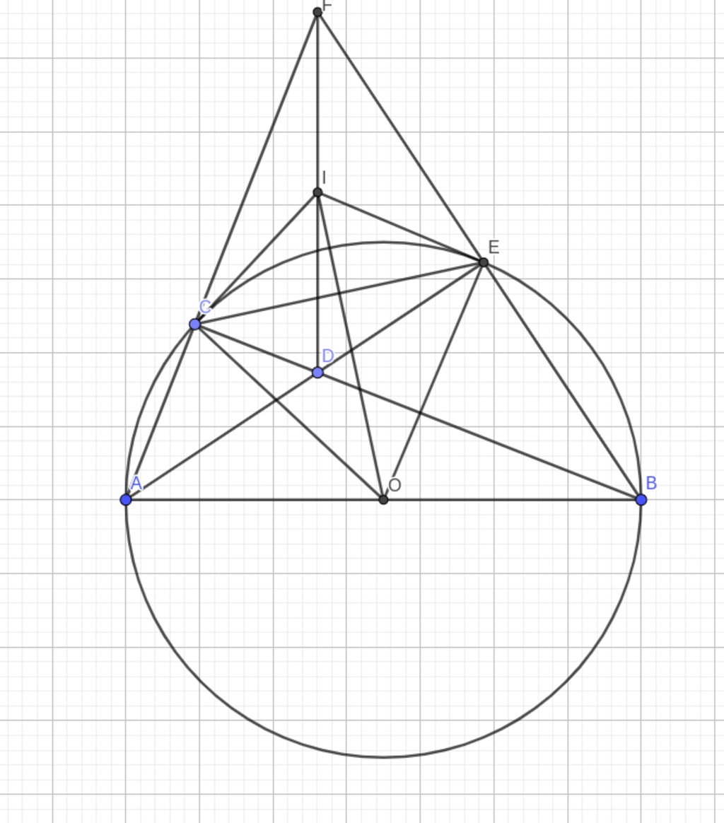 Mà $\widehat{CIE}=2\widehat{CFE}$ góc ở tâm bằng 2 lần góc nội tiếp