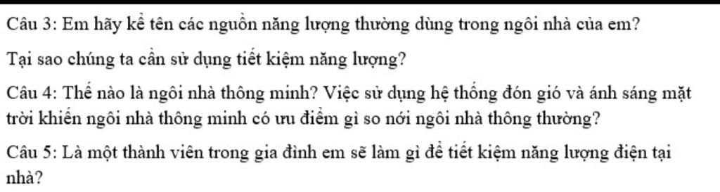 3.Các nguồn năng lượng thường dùng trong nhà em là : năng lượng điện, năng lượng chất đốt.
